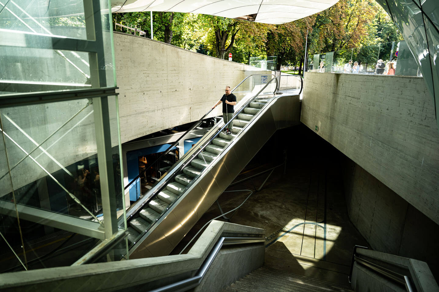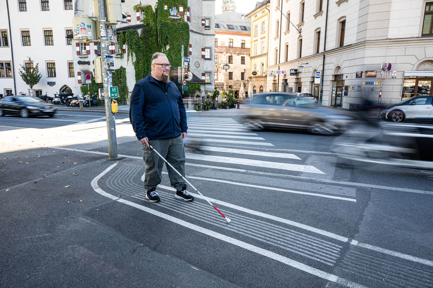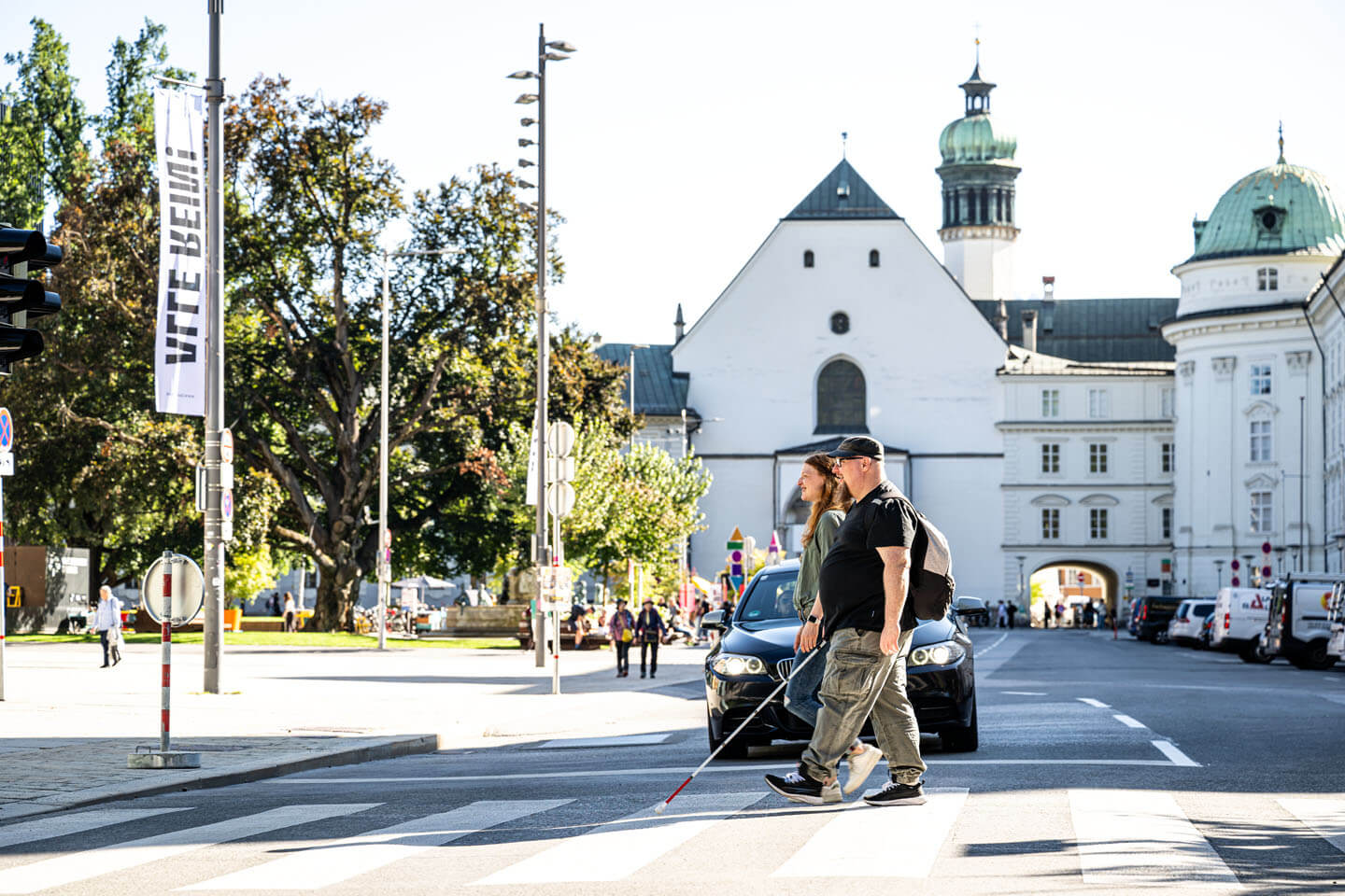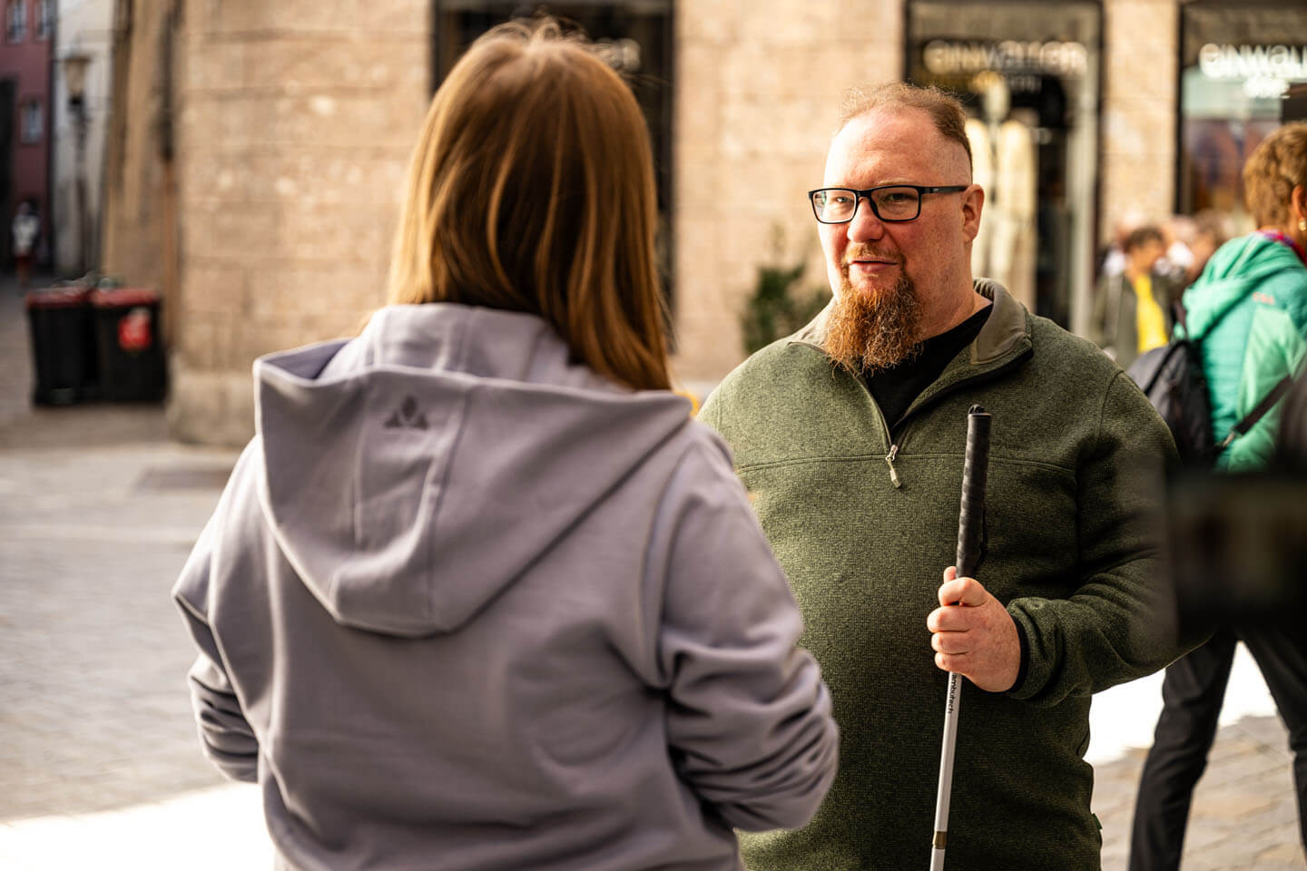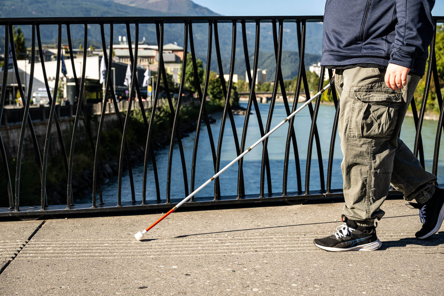 Am zweiten Tag begleiteten wir ein blinder Model durch die Altstadt von Innsbruck. Dabei entstanden generische Aufnahmen, die Unternehmen flexibel für Marketingmaterialien verwenden können, ohne dass sie zu stark ortsspezifisch wirken. Später ging es auf zwei Bergspots, die sich gut für Outdoor- und Landschaftsaufnahmen eigneten. Für uns war es wichtig, kurze Wege und